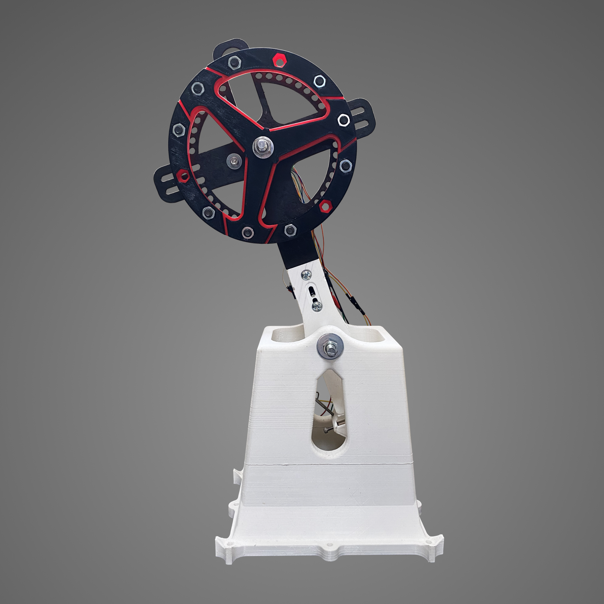 The machine comprises an Arduino Uno for programming, a motor for rotating the disc on top, and a gyro sensor for feedback.